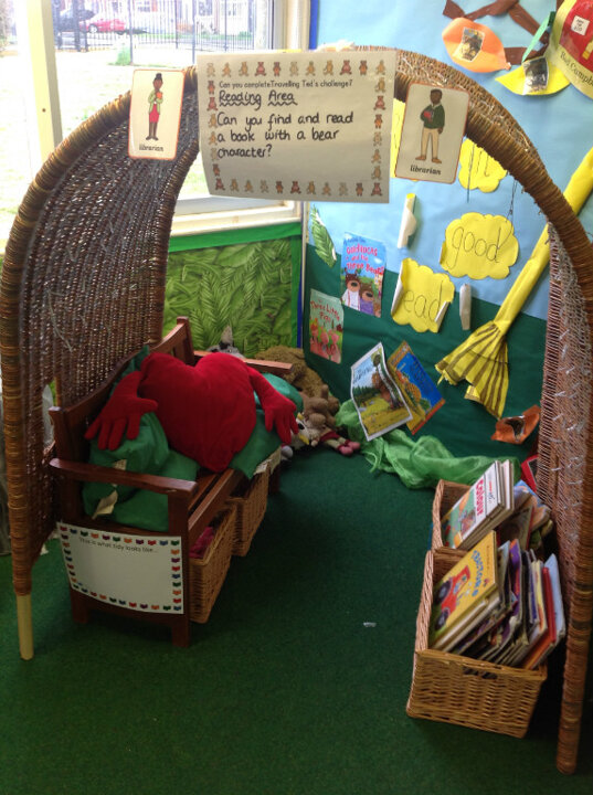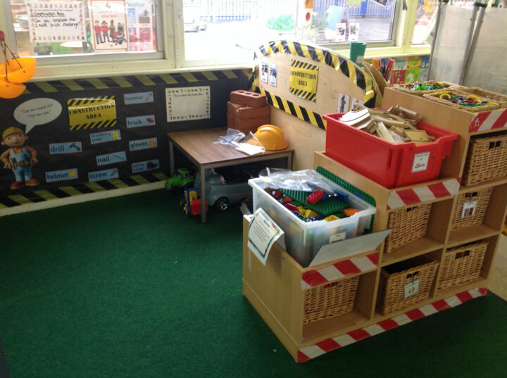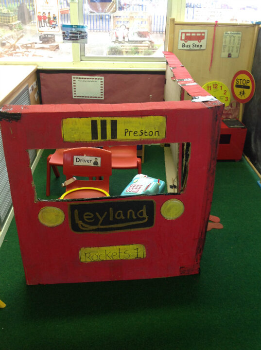 In Rockets class we have continuous provision which enables us to learn through play throughout the day. Below are pictures of our creative area, construction area, reading corner, writing corner, sand pit, roleplay area, malleable area and small world.