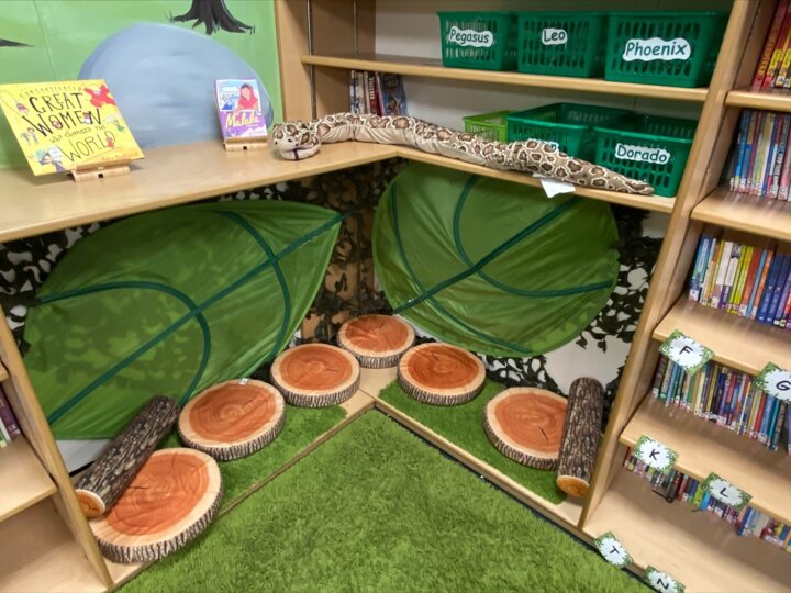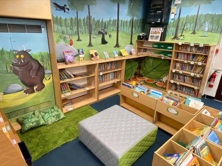 - Library 'Learning Pod' decorated with book characters and stocked with high quality books from the Lancashire Library Service